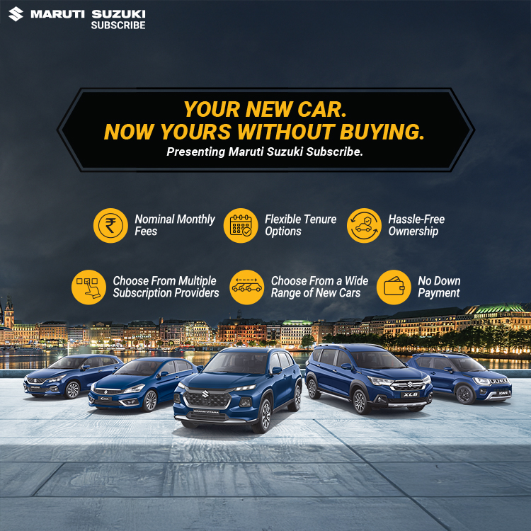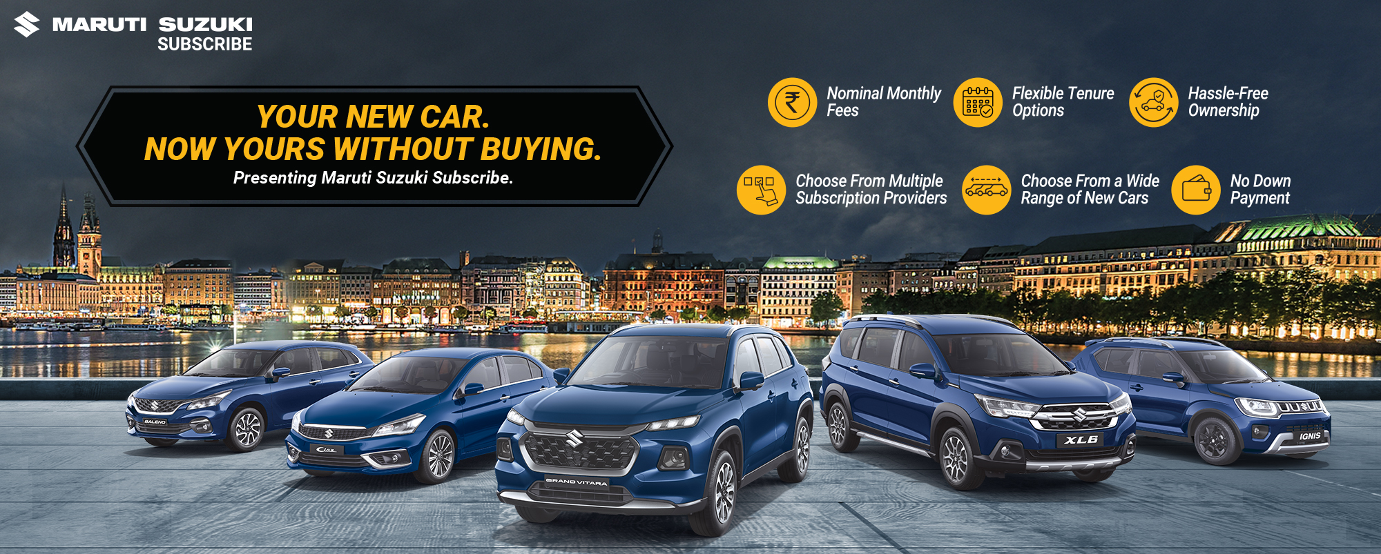 Located in Indore, Ocean Motors offers a plethora of options of Nexa cars for Maruti Suzuki Subscribe. You can choose your desired Maruti Suzuki car and drive it home at nominal monthly fees for a variety of flexible tenure periods. Whether you prefer Hatchback, Sedan, SUV or even MUV you are sure to find it at Ocean Motors, NEXA Geeta Bhawan Square Indore with an easy Maruti Suzuki Subscribe plan.